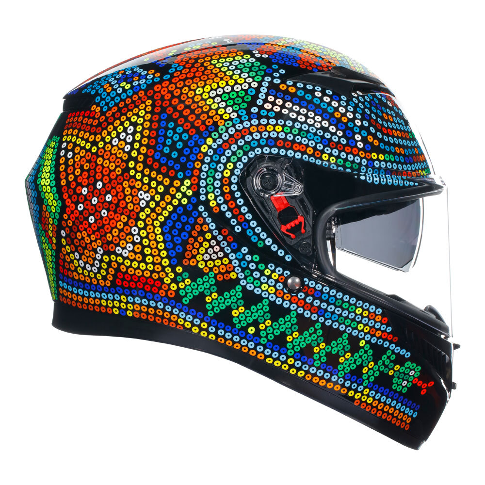 An AGV icon, evolving towards perfection. K3 is AGV's full-face road helmet that takes all the characteristics of a versatile, safe helmet to outstanding levels.