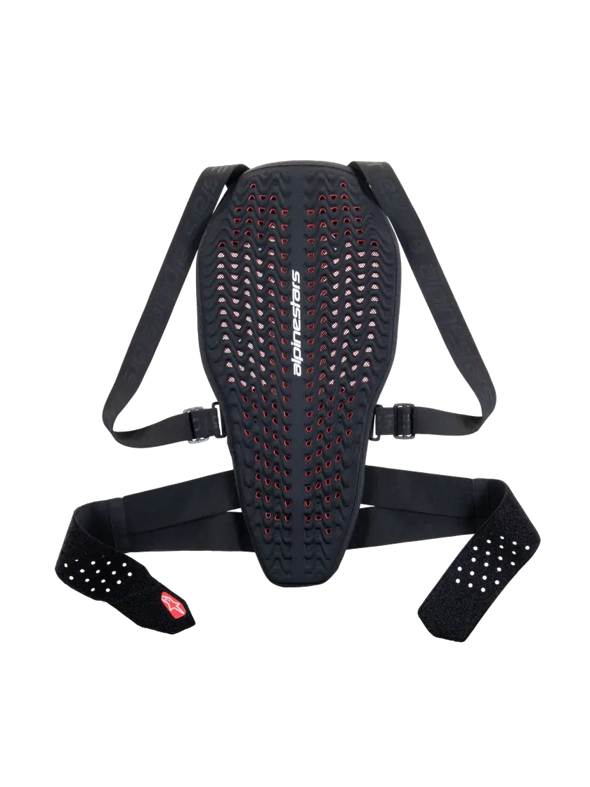 - The adjustable side straps are equipped with a V-configuration to ensure the back protector has a performance fit that follows the curvature of the spine.