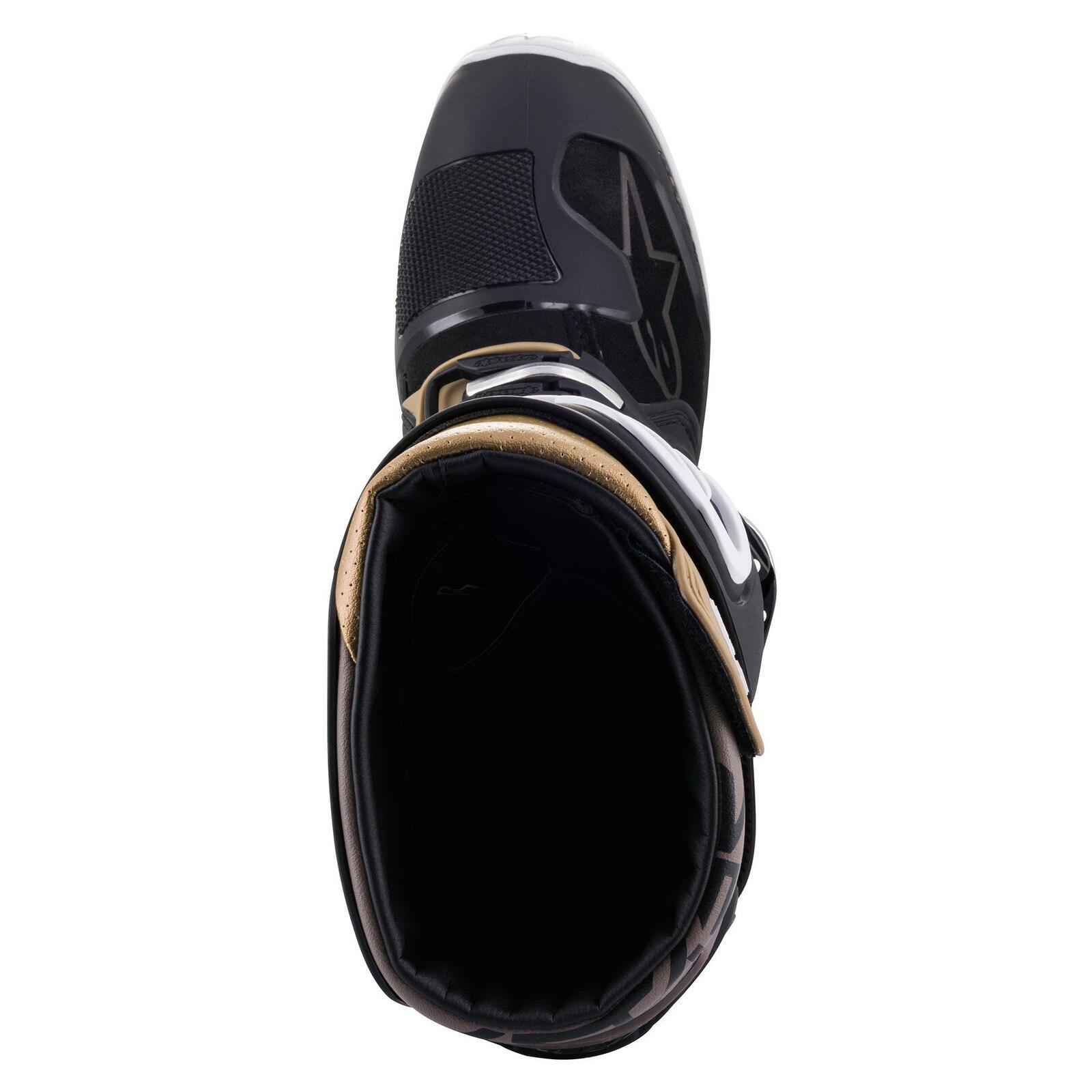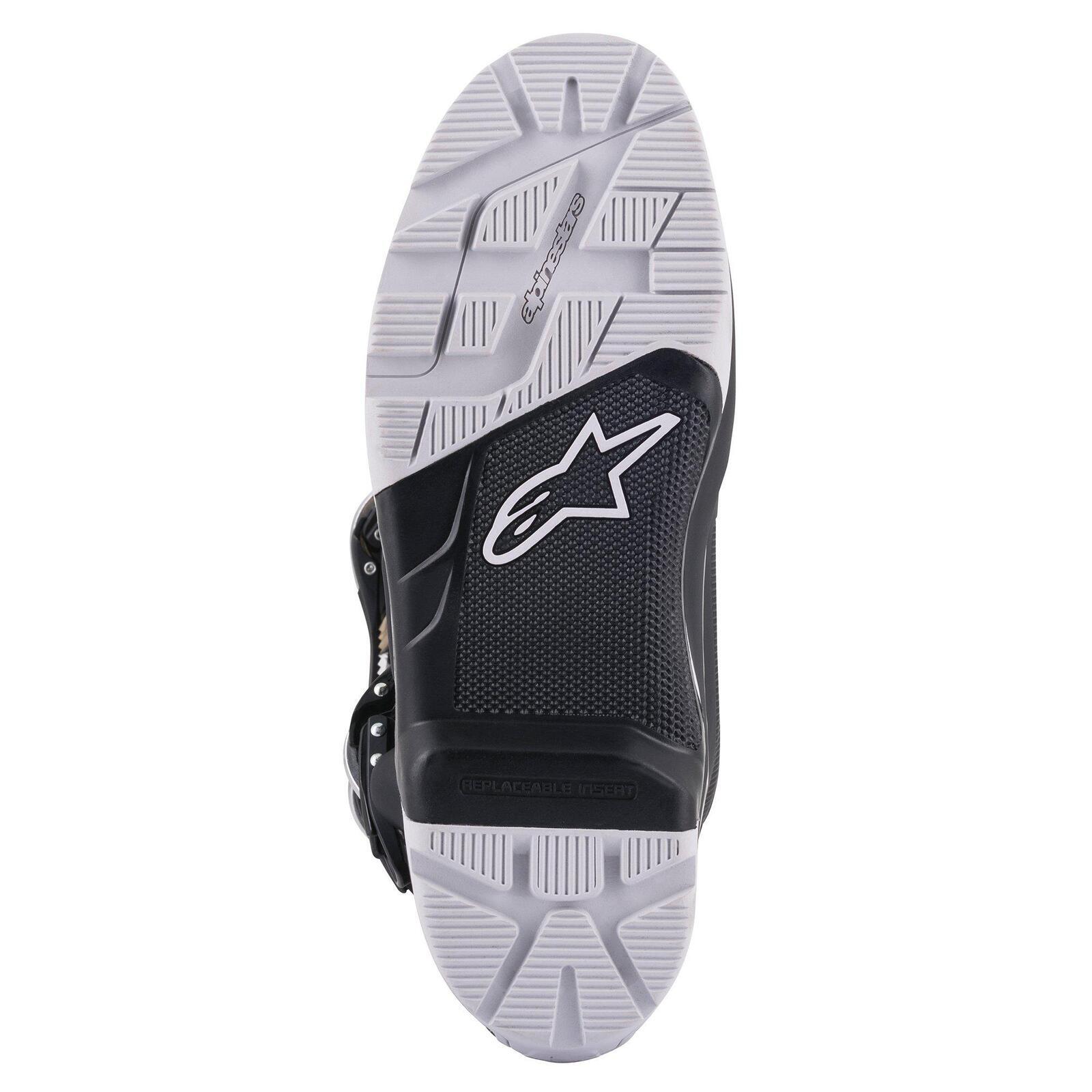 - Contoured calf protector plate is injected with high modulus polymer for impact resistance and incorporates Alpinestars’ developed blade flex system for greater precision control and movement, added protection for heel and Achilles tendon and helps prevent hyperflexion