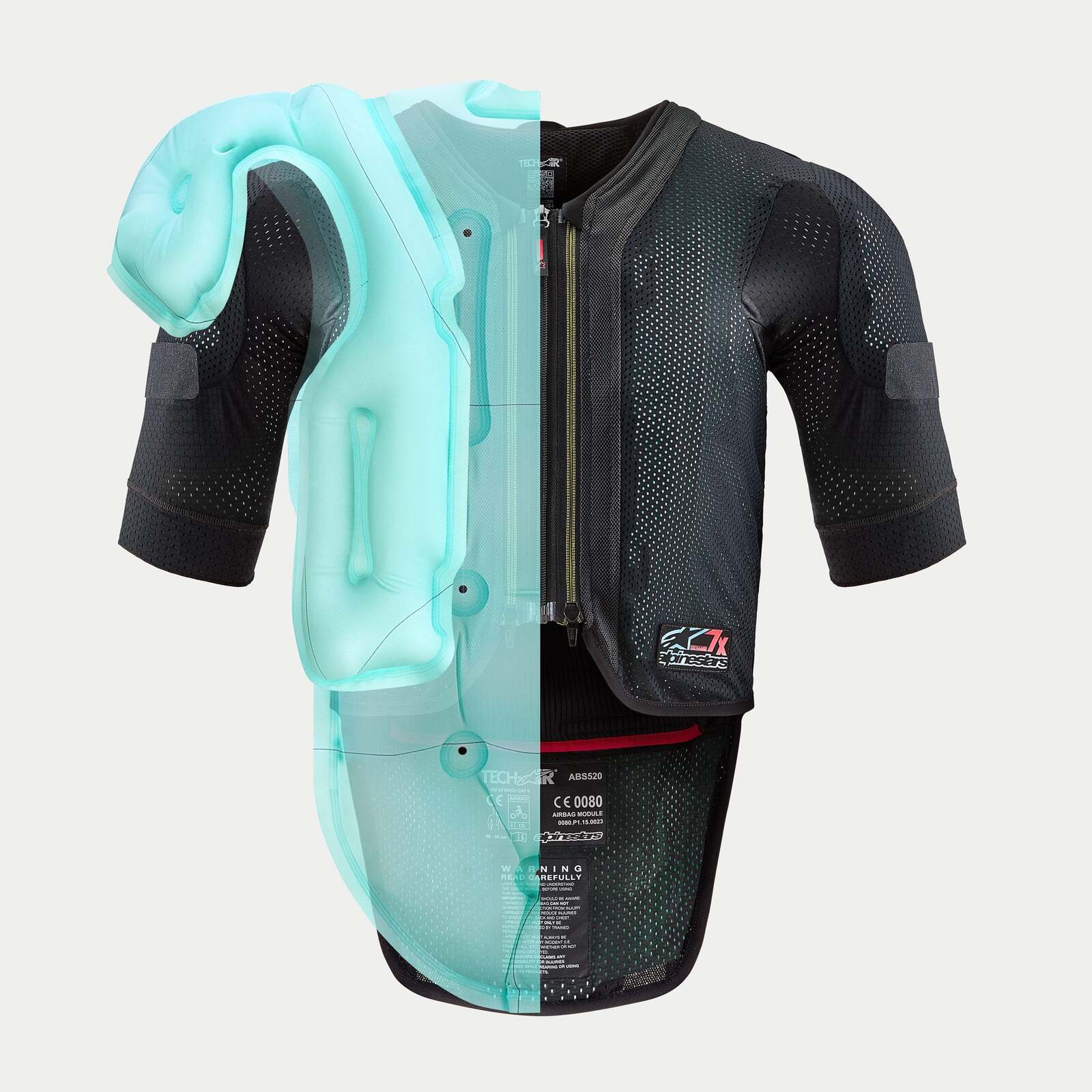 - Tech-Air® 7x is engineered to be worn under any Alpinestars Tech-Air® Ready or Tech-Air® Compatible leather suits or jackets, or any third-party leather suit with 4 cm of space around the circumference of the rider’s chest. The additional space for the chest is necessary to be able to accommodate the inflation of the Airbag in the event of a deployment. In addition, the leather suit should not be too tight in the crotch area, to prevent discomfort in the event of deployment.