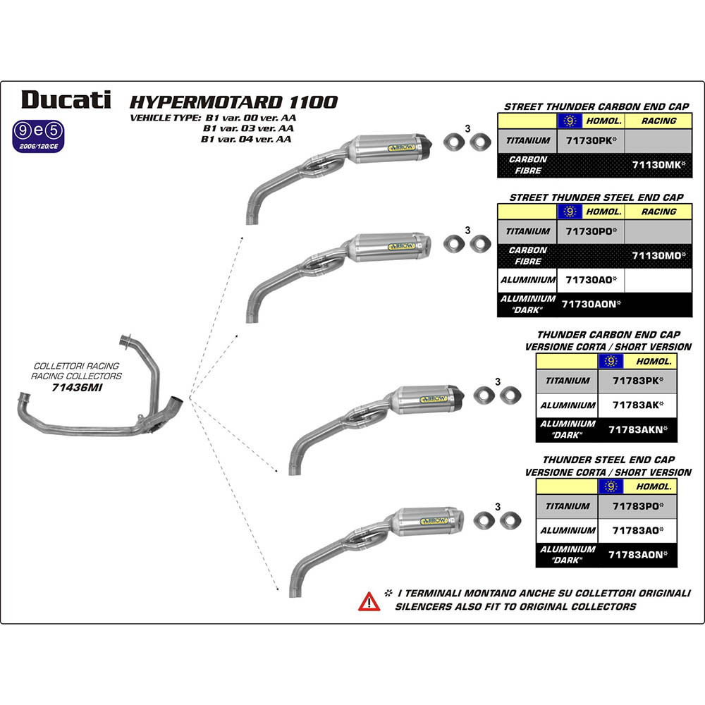 ARROW COLLECTORS - RACING 2:1 STAINLESS - DUCATI HYPERMOTARD 1100 '07-12