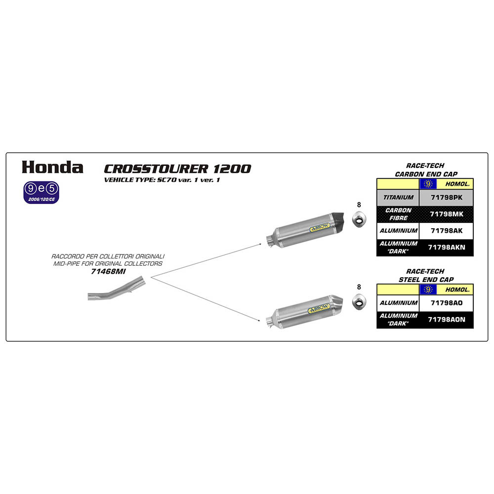 ARROW EXHAUST HOMOLOGATED TITANIUM RACE-TECH SLIP-ON CARBON CAP - HONDA CROSS TOURER VFR 1200X '12-1
