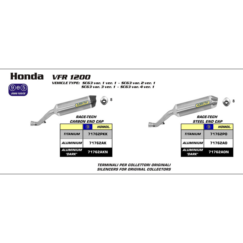 ARROW EXHAUST HOMOLOGATED ALUMINIUM RACE-TECH SLIP-ON - HONDA VFR1200F '10-14