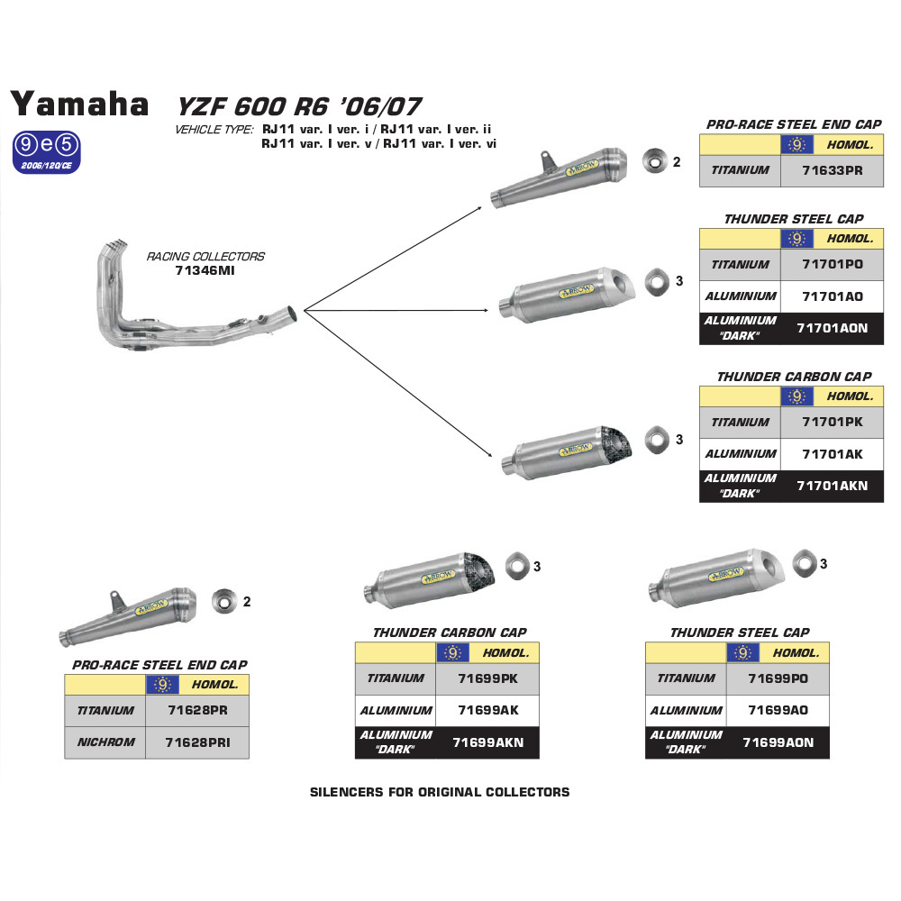 ARROW EXHAUST TITANIUM HOMOLOGATED THUNDER SLIP-ON CARBON CAP - YAMAHA R6 '08-14