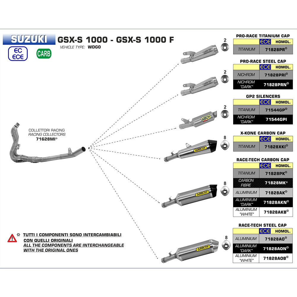 ARROW SILENCER - RACE-TECH ALUMINIUM DARK WITH CARBON END CAP - SUZUKI GSX-S1000/F