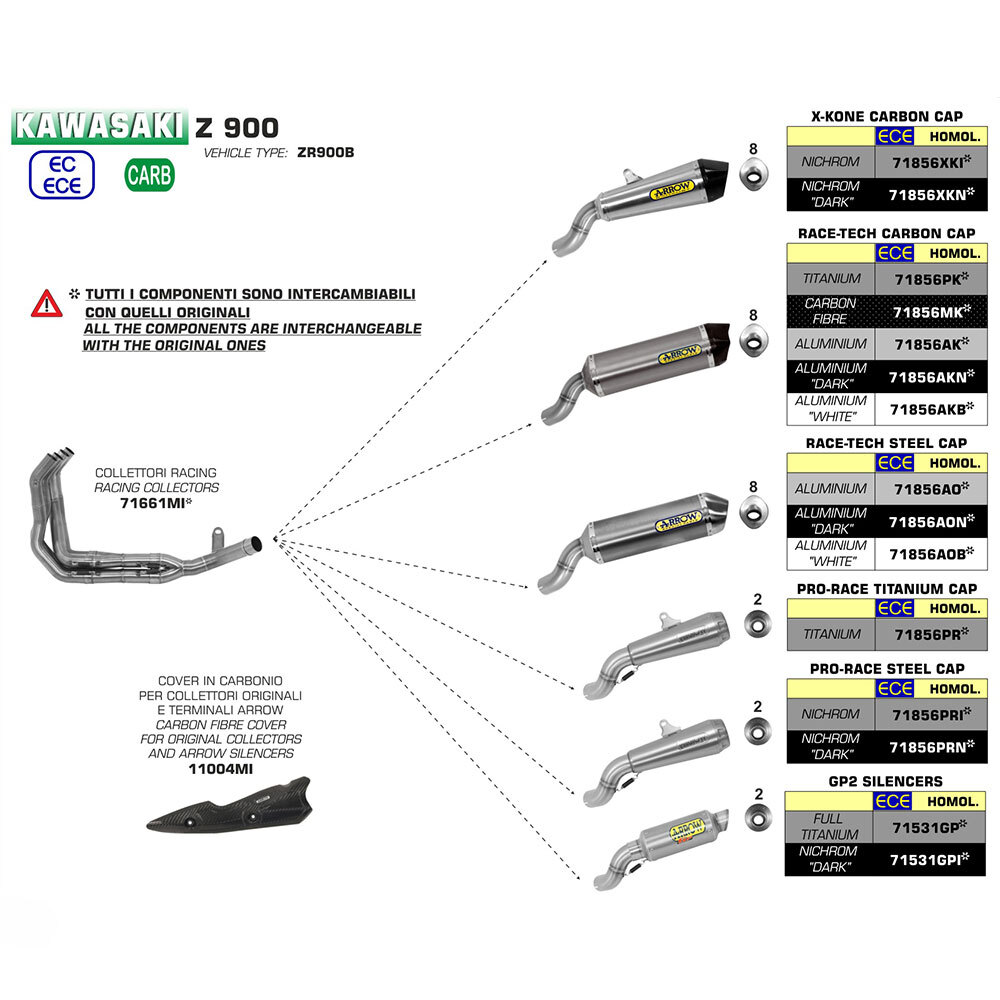 ARROW SILENCER - RACE-TECH ALUMINIUM DARK WITH CARBON END CAP - KAWASAKI Z900