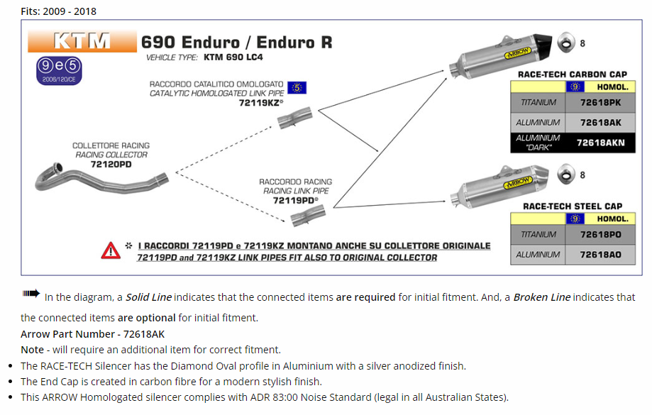 ARROW SILENCER - RACE-TECH ALUMINIUM WITH CARBON END CAP - KTM 690 ENDURO R '09-18