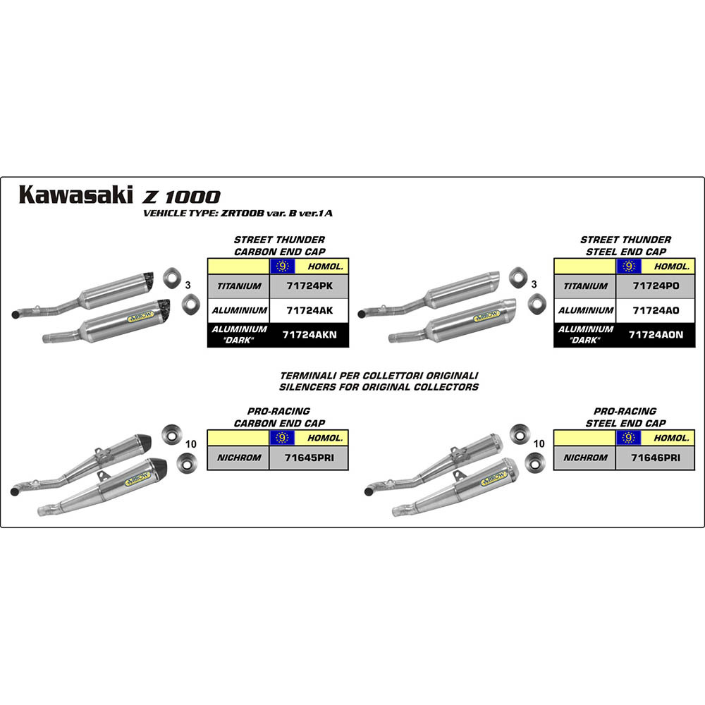 ARROW SILENCER SET - THUNDER ALUMINIUM DARK WITH CARBON END CAP - KAWASAKI Z 1000 '07-09