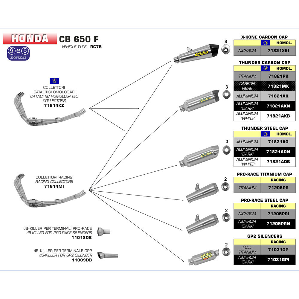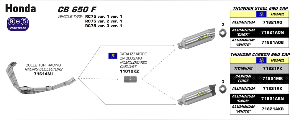 ARROW SILENCER - THUNDER ALUMINIUM DARK WITH STEEL END CAP - HONDA CB/CBR 650F '14-18