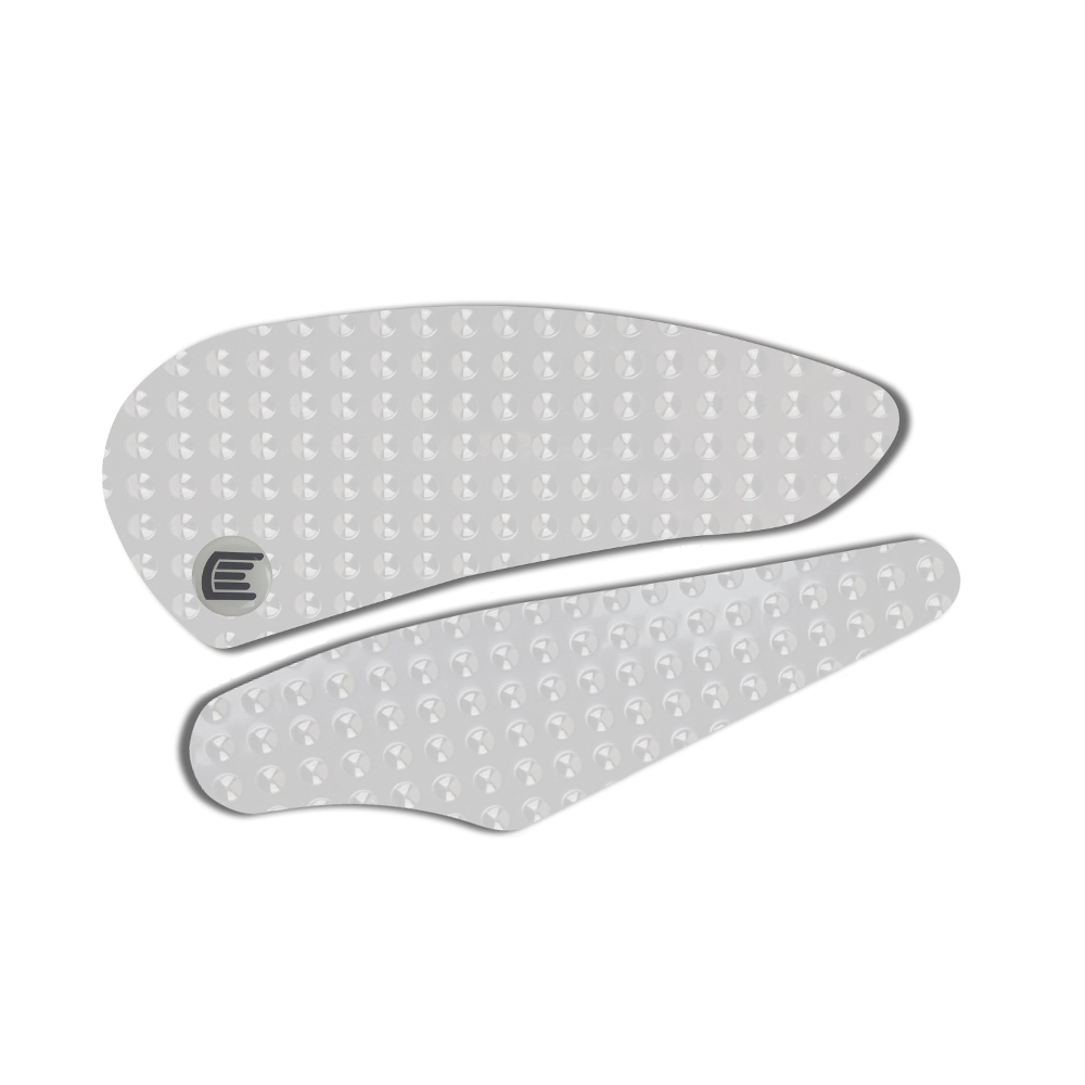 Eazi-Grip EVO - the non-abrasive high traction tank grips Yamaha YZF-R1 EVO Tank Grips includes Tank Grips, left and right side, clear IPA cleaner Fitting Instructions Manufactured in the UK from high quality polyurethane, these traction pads are designed to be applied to the fuel tank recesses next to the riders knees and come pre-cut to size. High quality polyurethane with soft but durable domed surface Improves rider control in corners and under braking with minimal effort Non-abrasive - kind to riders clothing and leathers Cut to size - quick and easy to apply - instructions and IPA surface cleaner provided Application Peel back part of the release liner then press the tank grip firmly onto the tank and slowly peel back the liner whilst applying the grip. Push down the surface and take care not to trap air bubbles as you go. Allow 48 hours for the adhesive to fully bond before using the grips. Use an IPA cleaner to prepare surface area NO methylated spirits/petrol/lighter fluid etc. as these leave behind a thin, greasy residue. For best results ensure prepared surface is above 10oC. Also available - Eazi-Grip PRO Tank Grips Race developed in BSB and Isle of Man TT for the more aggressive race or track-day rider, Eazi-Grip PRO Tank Grips features a unique, circular embossed pattern, with a flatter, lower profile that combines excellent grip and durability with exceptional rider feel. Eazi-Grip PRO Tank Grips have been specifically designed to allow greater movement on the bike whilst giving high levels of grip when needed through corners and under heavy braking. Designed, developed and manufactured in the U.K. Hint: Black grips look better than clear on a black tank, where clear grips can appear a little blue. Black grips can also look better than clear on a pure white tank, where clear grips can appear a little yellow. Clear grips are optimised for colours other than black and pure white. NB. Clear grips are supplied with a pink-coloured adhesive liner which makes the grips appear pink until the liner is removed. Suitable for Yamaha YZF-R1 2007 - 2008 models only Part No. EVO903CL