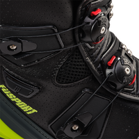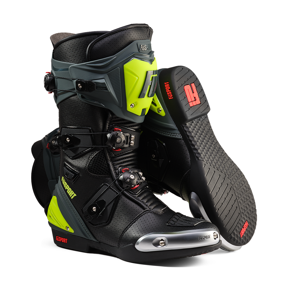 The XR1 motorcycle boot incorporates the innovative Füsport Rotor Closure system (F.R.C.S) with ratchet closure fasteners across three points, ensuring a secure fit around the calf, ankle, and forefoot. Combining this with the F.I.A.S., the XR1 stands out as one of the safest boots available.