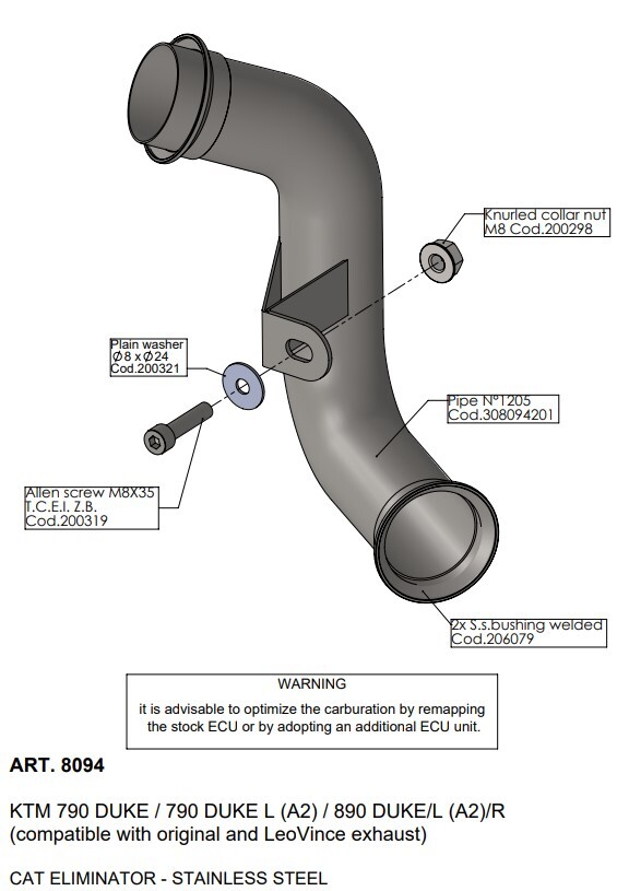 LEO VINCE LINK PIPE (CAT ELIM.) STAINLESS 790 / 890 DUKE '18> (compatible w orig. & LV slip-on)