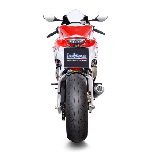 The LV-10 is the slip-on that we developed directly from our experience in MotoGP and SBK racing, and in collaboration with the best Moto2 and Moto3 teams. We designed an exhaust system with extremely compact dimensions to grant maximum lightness, the best performance and the unmistakable LeoVince racing sound. The rear stainless steel mesh embellishes the Shot blasted end cap to give it an extreme racing look.