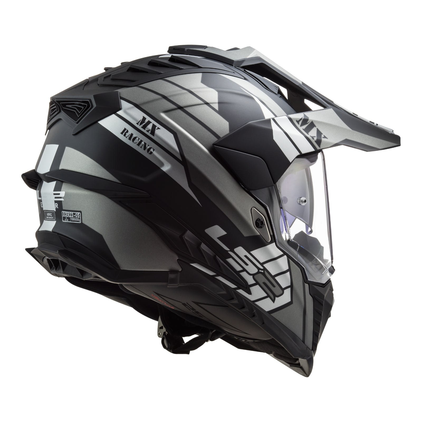 LS2's ALL-NEW MX701 Explorer helmet brings together years of experience inhelmet manufacturing ensuring an exceptional lid for all adventure riders. Withmany new technological solutions including the latest generation HPFC shelloffering low weight high safety outstanding impact absorption and a wide fieldof view. An integrated sun visor cuts out glare and bright sunlight ensuringclear vision no matter the time of day. Improved Dynamic Flow-throughVentilation with a new Liner Air Intake located at the front of the helmetensures consistent airflow between the liner and the EPS structure.The MX701offers ultimate versatility thanks to its unique ability to remove the peak andseal the peak anchor points with plugs included in thebox.