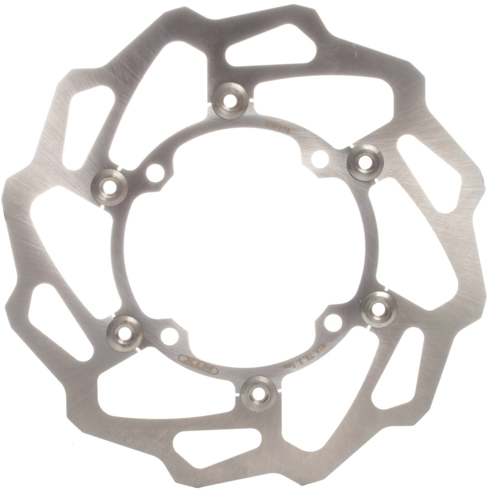 MTX floating discs are made from two segments of stainless steel whichare riveted together to allow the outer section of stainless steel toexpand under extreme temperatures. The outer section is manufactured fromJapanese SUS 420 stainless steel then heat-treated to HRC 36+-2 while thecentre of the disc is manufactured from steel or alloy. An alternativeto large original discs floating discs improve braking performance byensuring the disc is always in perfect alignment with your pads for theperfect contact throughout all operating temperatures. Lightening and drillholes are designed to improve braking performance and reduce the disctemperature.