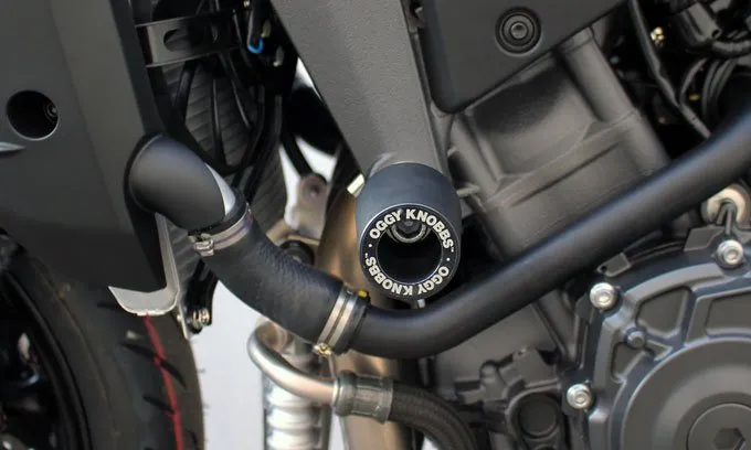Oggy Knobb Frame Sliders are designed to reduce damage to your motorcycle from impact and abrasion by the road surface in an accident.