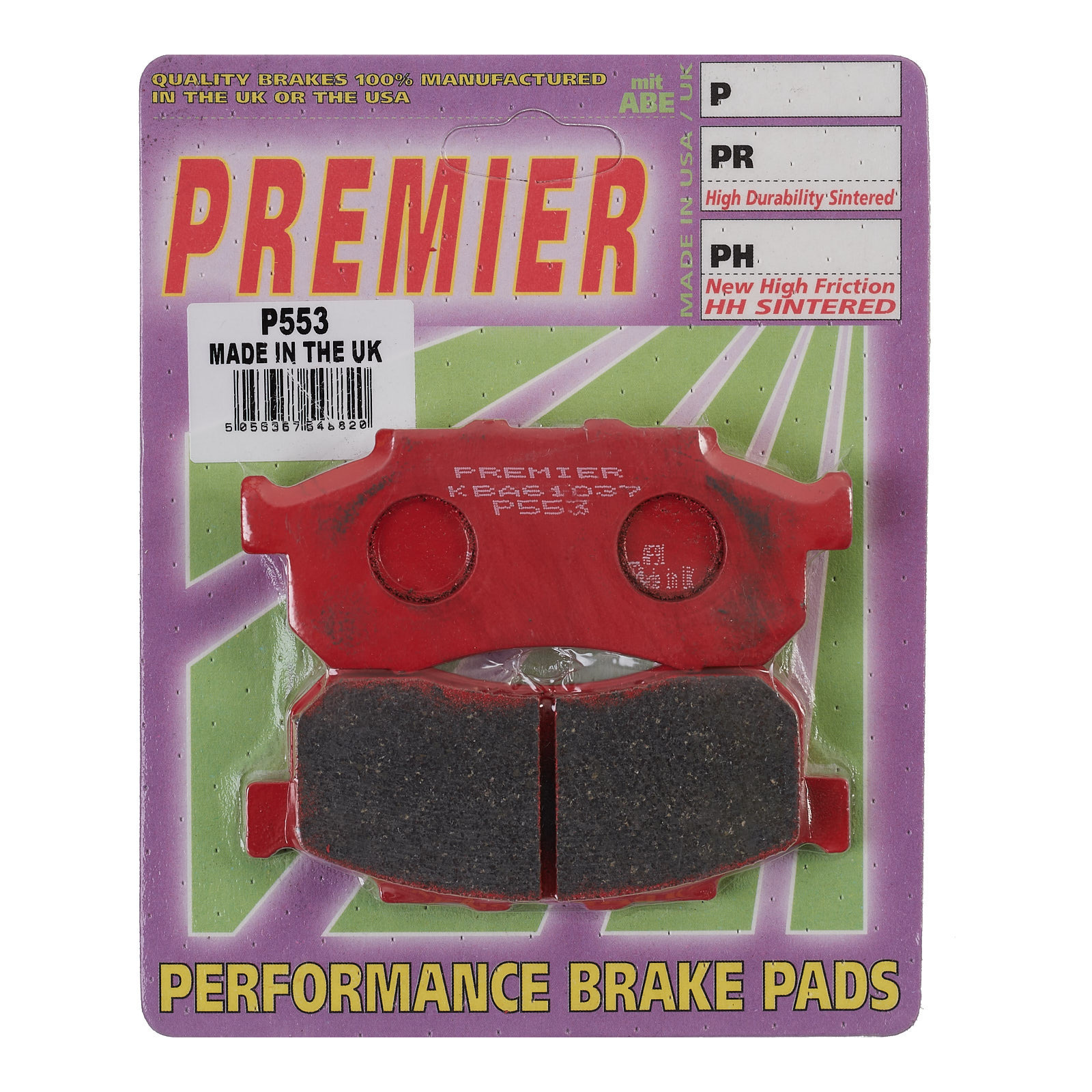 Premier's most successful general use material the P series pads are tough aramid fibre based organic material giving supurb brake effect on all sport bikes and cruisers.