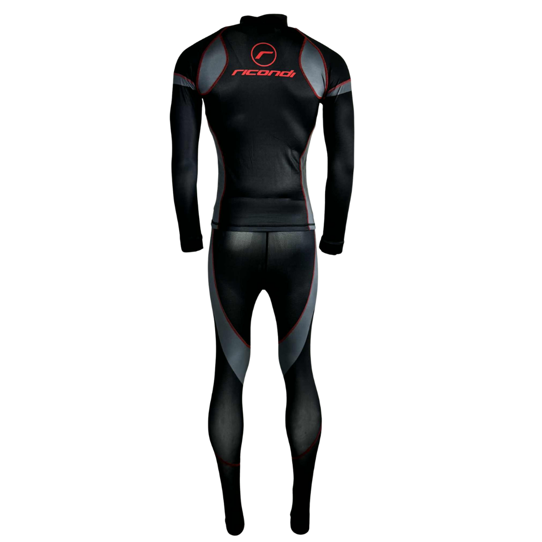 RICONDI COMPCOOL 2 PIECE COMPRESSION SUIT BLACK GREY RED XXS