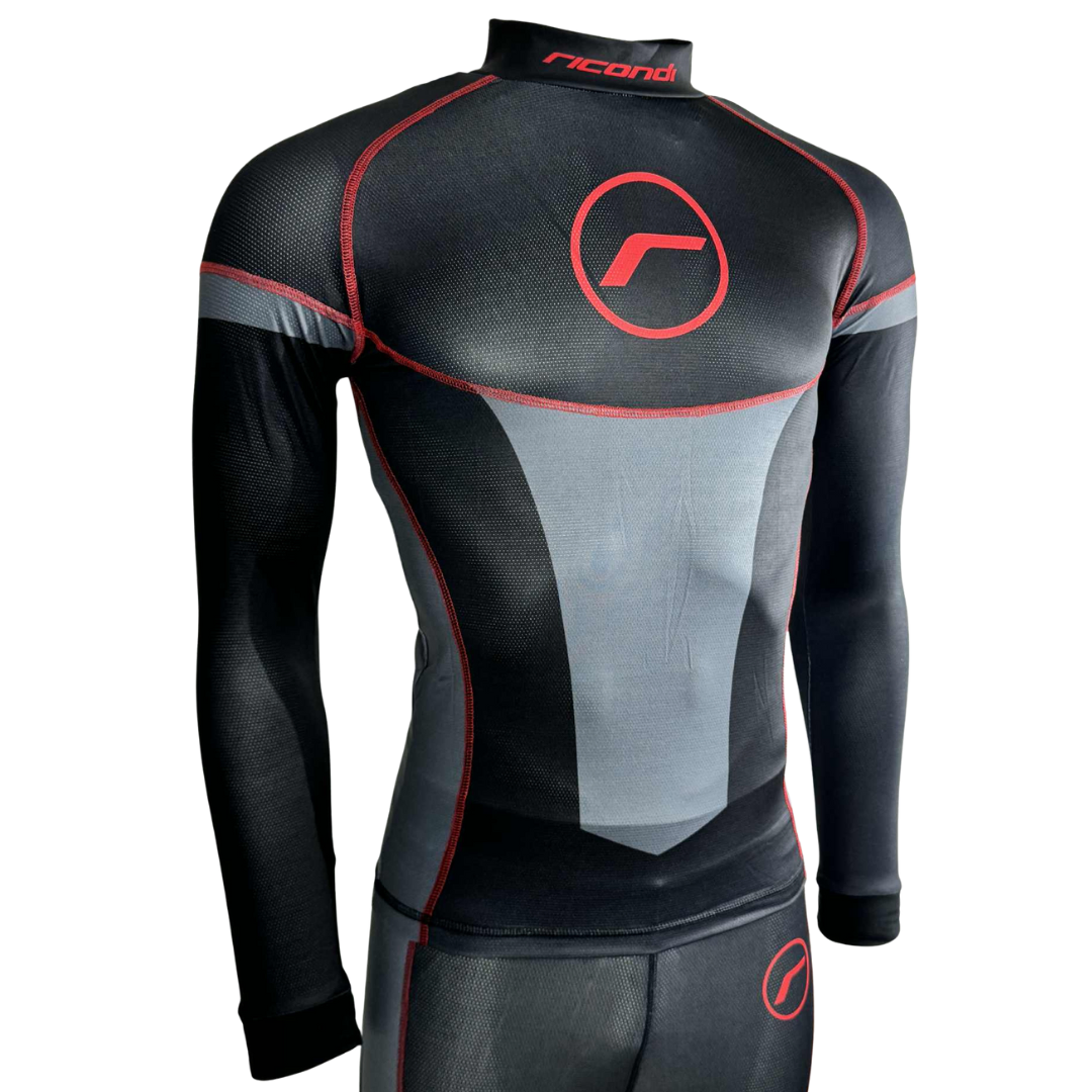 Ricondi CompCool 2 Piece Compression Suit - Black Grey Red - Taking motorcycle compression wear and under suits to the next level.