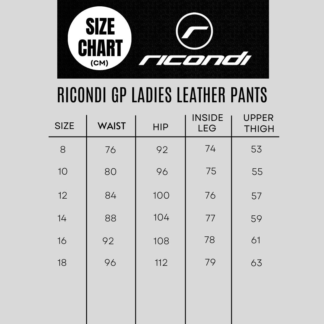 RICONDI LADIES GP ROAD LEATHER PANTS BLACK GUNMETAL 10
