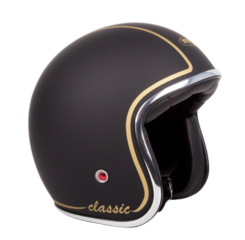 Traditional Open Face ‘Jet’ style helmet, comfortable low fitting design for great looks. Includes new Retro Chrome Strip edging and Stylish Synthetic leather lining for the Classic look.
