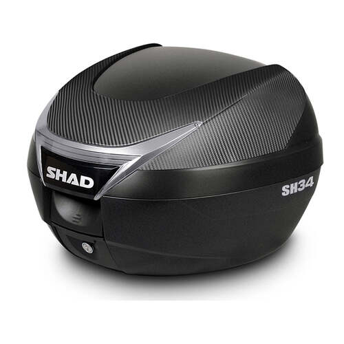 The SH34 Carbon top box is a smaller top box in SHAD’s top box range, weighing just over 3kg but still being able to carry a full face helmet plus accessories! The SH34 top box is perfect for mopeds or smaller bikes.