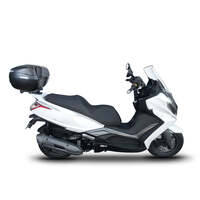 SHAD top box fitting kits are designed to allow you to mount a range of SHAD top boxes to your Kymco Downtown 125. SHAD's bike specific fitting kits fit onto the tail of the bike and then a SHAD mounting plate (included with all SHAD top boxes except Terra Aluminium cases) securely bolts to the fitting kit which then allows a SHAD top box to be easily attached.