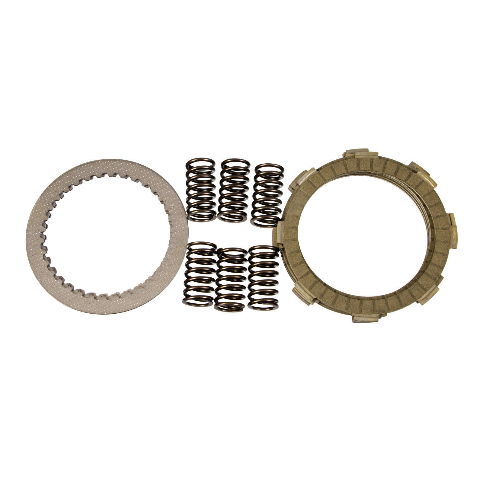 Whites Complete Clutch Kits contain a complete pack of friction steel plates and a set of clutch springs for your motorcycle orATV. The Whites Complete Clutch Kit is the easiest and bestreplacement for your clutch. The kit has complete compatibility withyour OEM clutch components. Quality drive and friction plates aremade with precision to ensure tight tolerances in the clutch basket andinner hub. Quality cork-based friction plates offer a great feel and strongengagement.