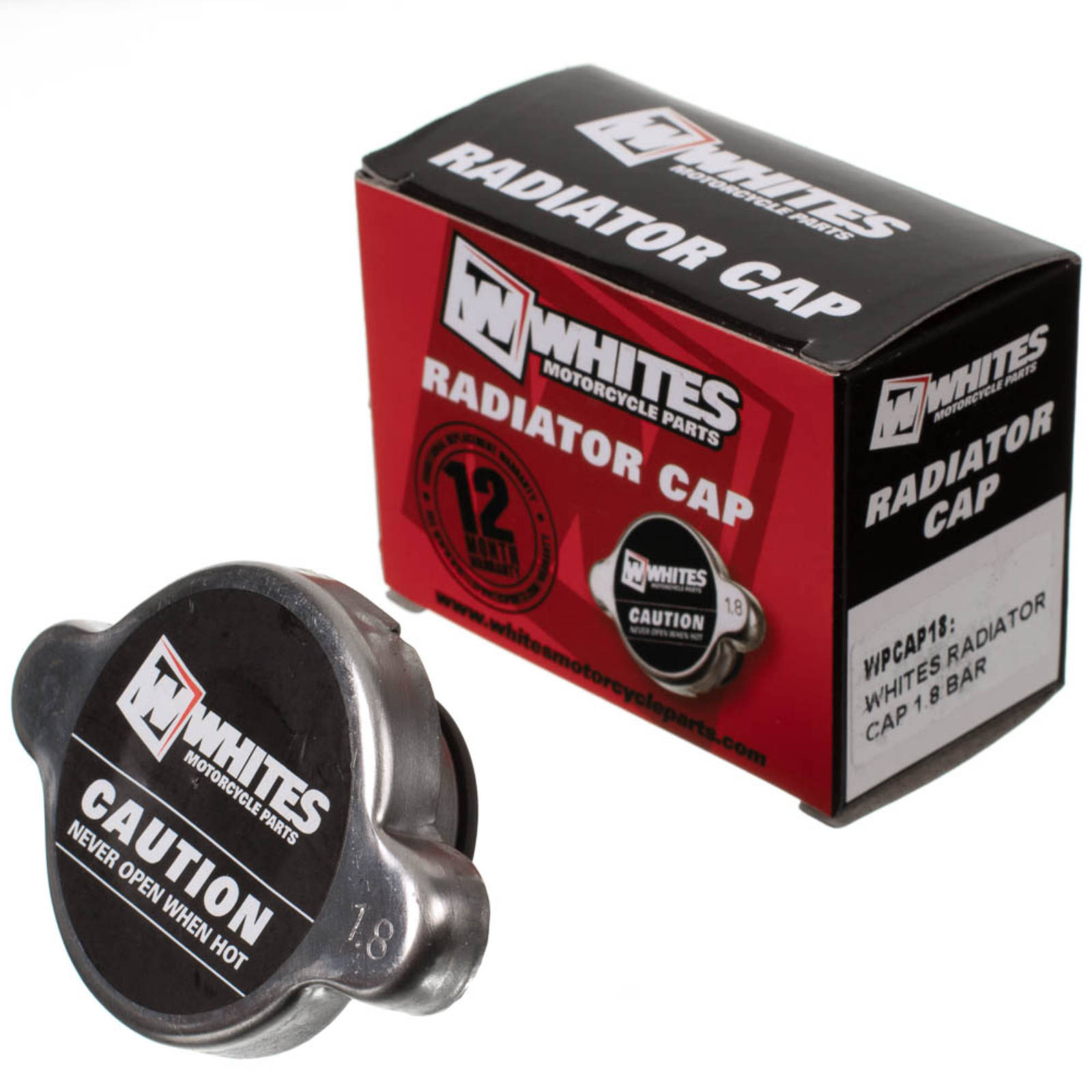 The Whites High-Pressure Radiator Cap is the simplest and mostinexpensive way to reduce your motorcycle or ATV from boiling over. TheWhites High-Pressure Radiator cap raises your cooling system’smaximum operating pressure and therefore raises the boiling point of yourcoolant. This is a perfect upgrade for most motorcycle and ATV radiatorswith stock caps.