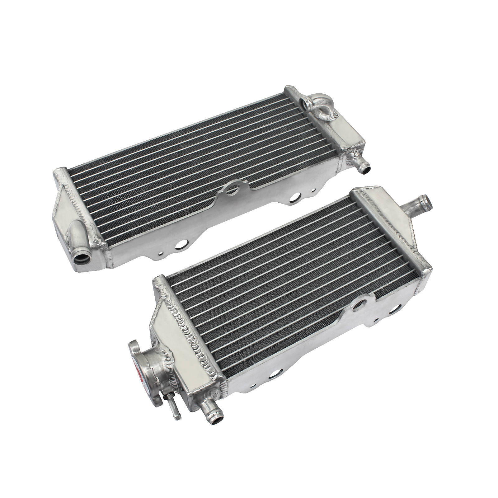 Whites aluminium radiators make great replacements toyour bent cracked and damaged radiators. Whites radiators offerexceptional cooling and maximum efficiency to ensure your machine's topperformance. Based on the OEM specs a hand-welded aluminium design offersboth a great fit and styling. All cap side radiators will include a newradiator cap.